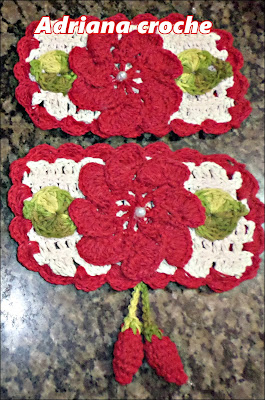 JOGO DE BANHEIRO OVAL RENDADO VERMELHO/ BRANCO